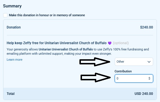 We've switched to Zeffy for processing donations so that 100% of your contribution goes straight to the annual fund. Zeffy suggests a donation to their platform, usually 15%, to cover processing fees, but you have the choice to set that suggested donation to $0.00 (under Summary) if you prefer. Your support makes a direct impact, and we appreciate your generosity!