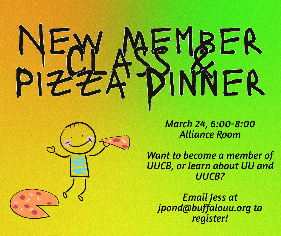 And in Adult Religious Education - Deepening Spiritual Practice, a new religious education class for adults, will be held on Tuesday evenings at 6:30pm starting January 6. Join me for a nine-session exploration of the role of spiritual practice in our lives and how to sustain it. Email me at jpond@buffalouu.org to register or with any questions.